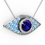 Lab safir ve akuamarin 8 ayar beyaz altın kolye (40 cm beyaz altın rolo zincir)
