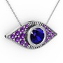 Lab safir ve ametist 14 ayar beyaz altın kolye (40 cm beyaz altın rolo zincir)