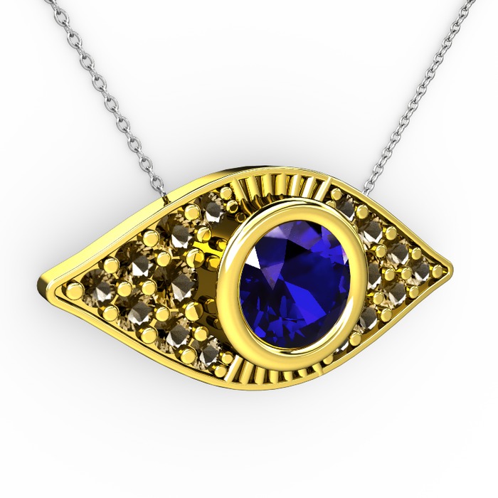 Lab safir ve dumanlı kuvars 8 ayar altın kolye (40 cm gümüş rolo zincir)