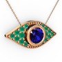 Lab safir ve kök zümrüt 14 ayar rose altın kolye (40 cm rose altın rolo zincir)
