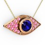 Lab safir ve pembe kuvars 18 ayar rose altın kolye (40 cm gümüş rolo zincir)