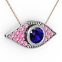 Lab safir ve pembe kuvars 8 ayar beyaz altın kolye (40 cm rose altın rolo zincir)