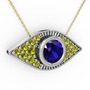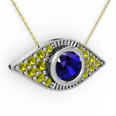 Lab safir ve peridot 8 ayar beyaz altın kolye (40 cm gümüş rolo zincir)