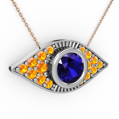 Lab safir ve sitrin 14 ayar beyaz altın kolye (40 cm rose altın rolo zincir)