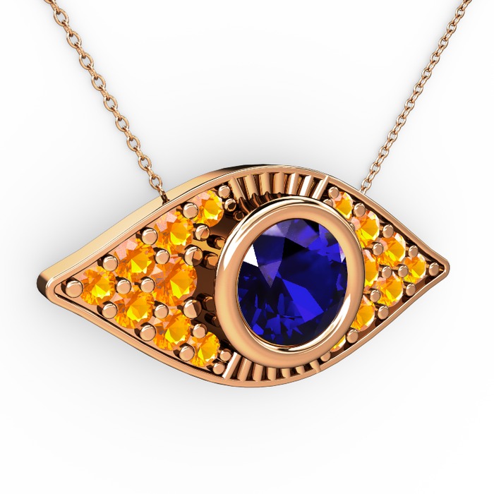 Lab safir ve sitrin 8 ayar rose altın kolye (40 cm rose altın rolo zincir)