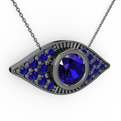 Lab safir 925 ayar siyah rodyum kaplama gümüş kolye (40 cm gümüş rolo zincir)