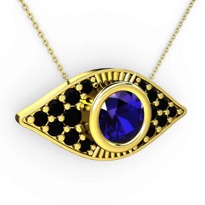 Lab safir ve siyah zirkon 14 ayar altın kolye (40 cm altın rolo zincir)