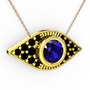 Lab safir ve siyah zirkon 14 ayar altın kolye (40 cm rose altın rolo zincir)