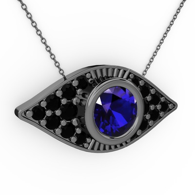 Lab safir ve siyah zirkon 925 ayar siyah rodyum kaplama gümüş kolye (40 cm gümüş rolo zincir)