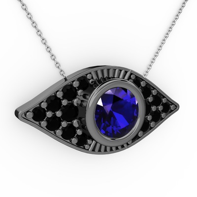 Lab safir ve siyah zirkon 925 ayar siyah rodyum kaplama gümüş kolye (40 cm gümüş rolo zincir)