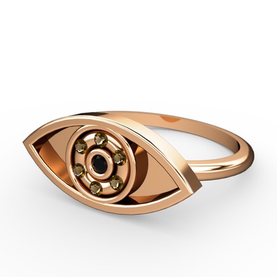 Siyah zirkon ve dumanlı kuvars 925 ayar rose altın kaplama gümüş yüzük