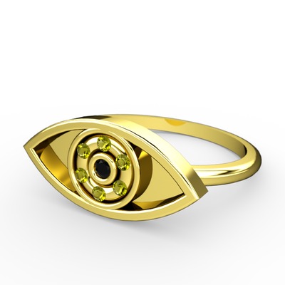 Siyah zirkon ve peridot 14 ayar altın yüzük