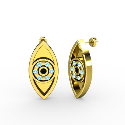 Siyah zirkon ve akuamarin 14 ayar altın küpe