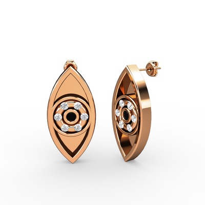 Siyah zirkon ve pırlanta 925 ayar rose altın kaplama gümüş küpe (0.072 karat)