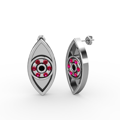 Siyah zirkon ve rodolit garnet 8 ayar beyaz altın küpe