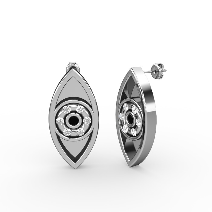 Siyah zirkon ve swarovski 18 ayar beyaz altın küpe