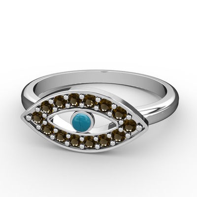 Dumanlı kuvars ve turkuaz 925 ayar gümüş yüzük