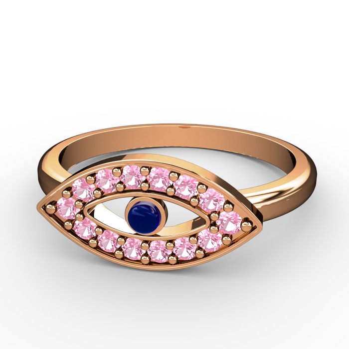 Pembe kuvars ve lab safir 14 ayar rose altın yüzük