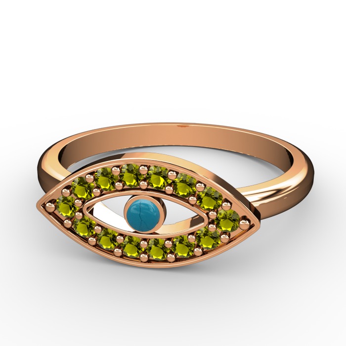 Peridot ve turkuaz 925 ayar rose altın kaplama gümüş yüzük
