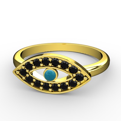 Siyah zirkon ve turkuaz 18 ayar altın yüzük