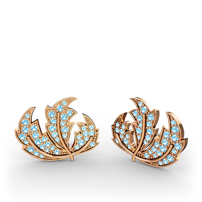 Akuamarin 925 ayar rose altın kaplama gümüş küpe