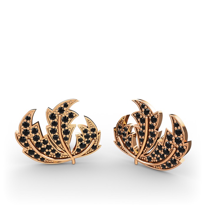 Siyah zirkon 18 ayar rose altın küpe