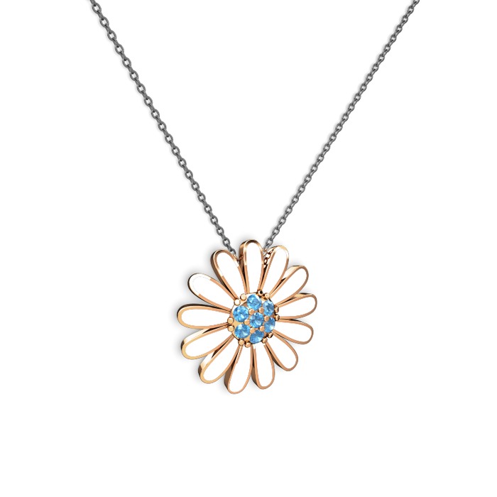 Akuamarin 14 ayar rose altın kolye (Beyaz mineli, 40 cm gümüş rolo zincir)