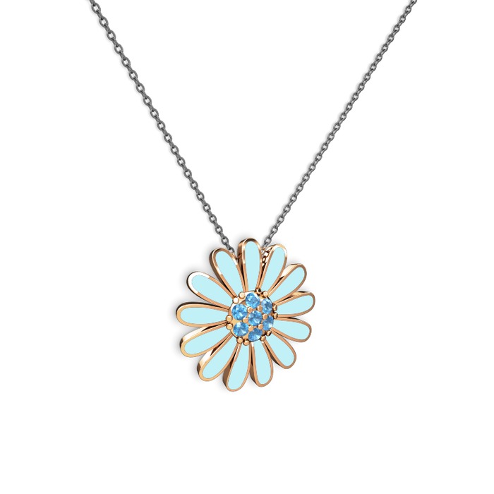 Akuamarin 14 ayar rose altın kolye (Pastel mavi mineli, 40 cm gümüş rolo zincir)