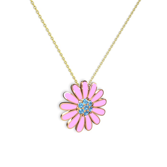 Akuamarin 18 ayar rose altın kolye (Pembe mineli, 40 cm altın rolo zincir)