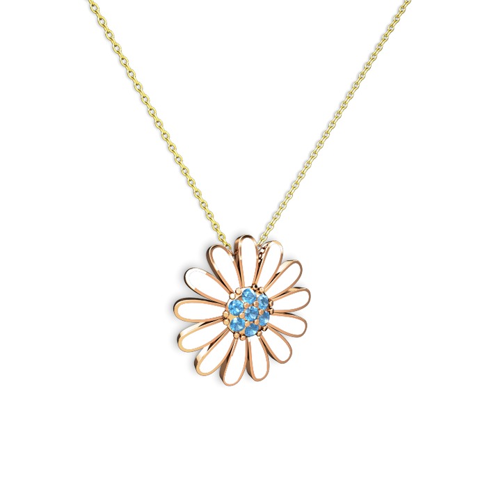 Akuamarin 925 ayar rose altın kaplama gümüş kolye (Beyaz mineli, 40 cm gümüş rolo zincir)