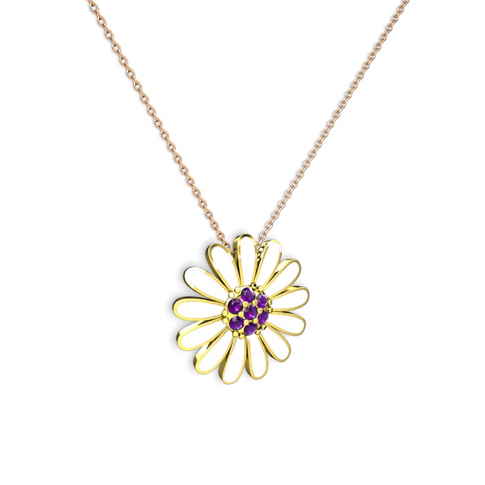 Ametist 14 ayar altın kolye (Beyaz mineli, 40 cm rose altın rolo zincir)
