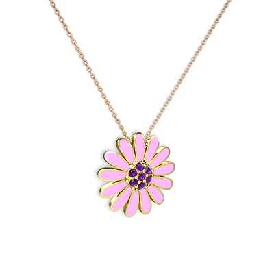 Ametist 14 ayar altın kolye (Pembe mineli, 40 cm rose altın rolo zincir)
