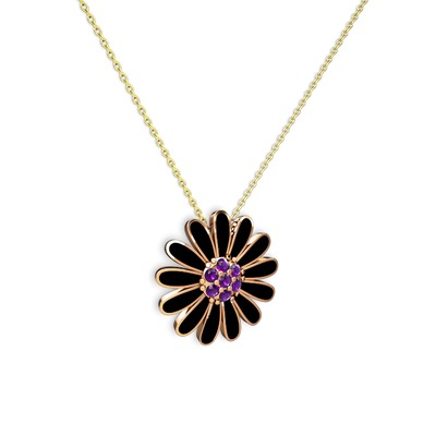 Ametist 18 ayar rose altın kolye (Siyah mineli, 40 cm altın rolo zincir)