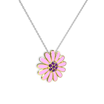 Ametist 8 ayar altın kolye (Pembe mineli, 40 cm gümüş rolo zincir)