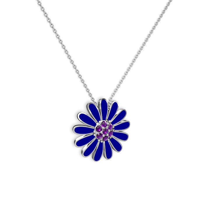 Ametist 8 ayar beyaz altın kolye (Lacivert mineli, 40 cm beyaz altın rolo zincir)