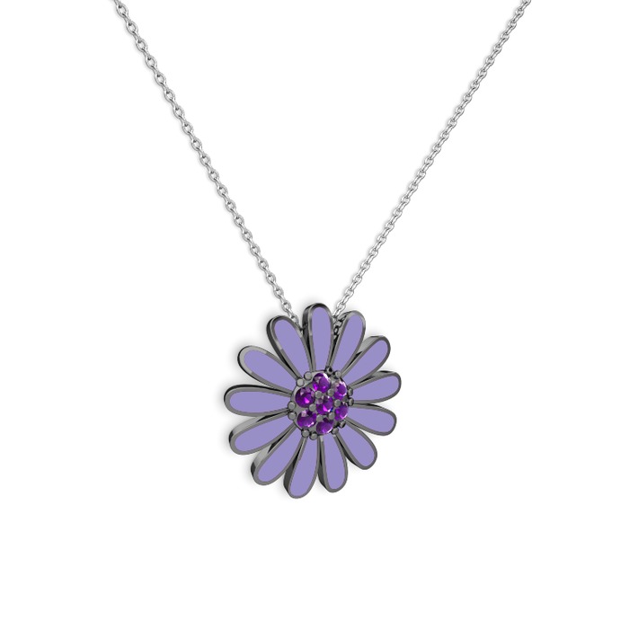 Ametist 925 ayar siyah rodyum kaplama gümüş kolye (Menekşe mineli, 40 cm beyaz altın rolo zincir)