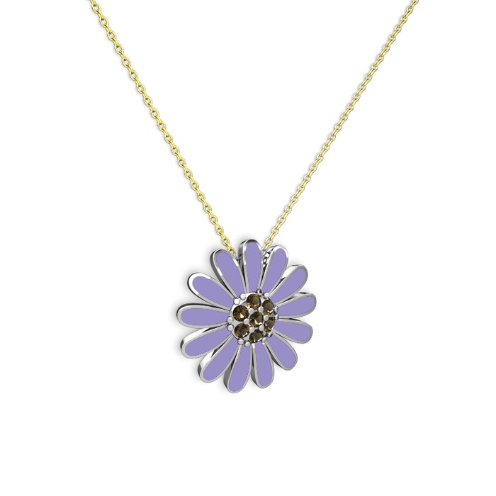 Dumanlı kuvars 14 ayar beyaz altın kolye (Menekşe mineli, 40 cm gümüş rolo zincir)