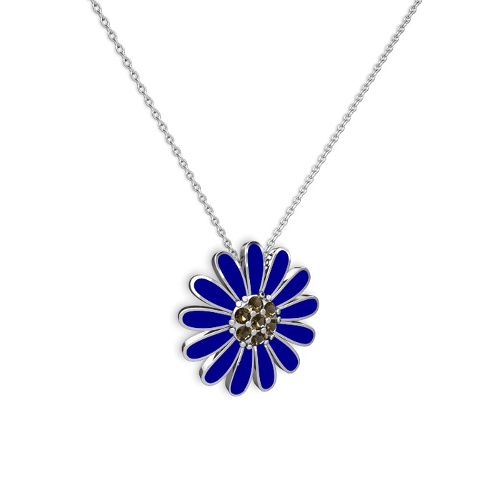 Dumanlı kuvars 18 ayar beyaz altın kolye (Lacivert mineli, 40 cm beyaz altın rolo zincir)