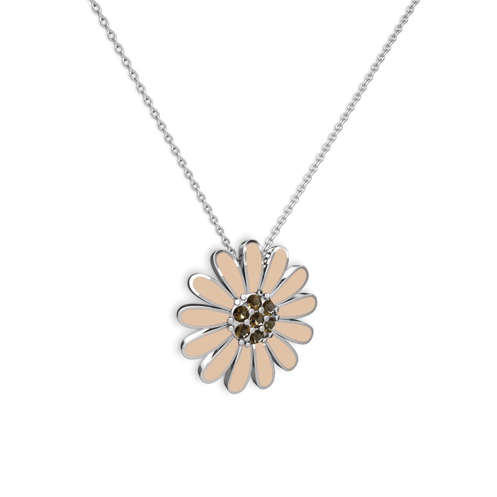 Dumanlı kuvars 8 ayar beyaz altın kolye (Ekru mineli, 40 cm beyaz altın rolo zincir)