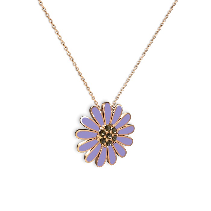 Dumanlı kuvars 8 ayar rose altın kolye (Menekşe mineli, 40 cm rose altın rolo zincir)