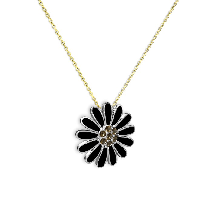 Dumanlı kuvars 925 ayar gümüş kolye (Siyah mineli, 40 cm altın rolo zincir)