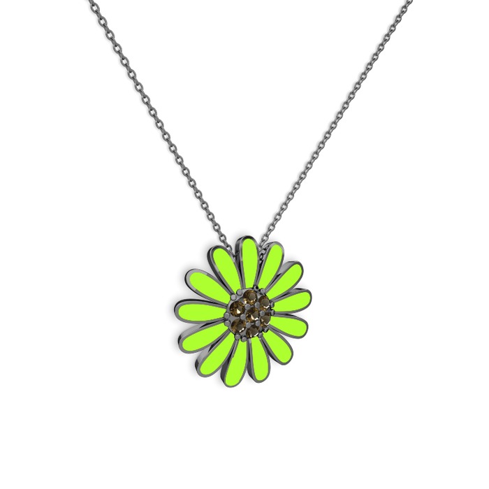 Dumanlı kuvars 925 ayar siyah rodyum kaplama gümüş kolye (Neon yeşil mineli, 40 cm gümüş rolo zincir)