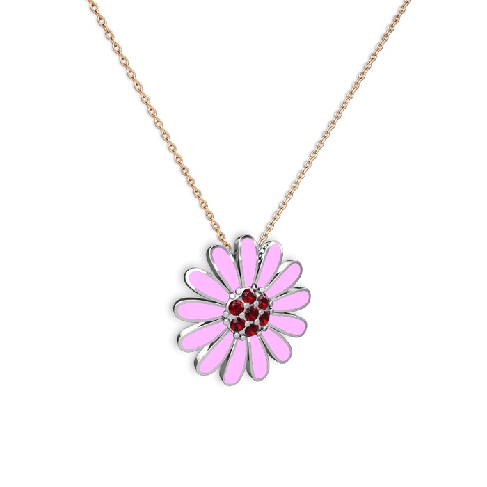 Garnet 14 ayar beyaz altın kolye (Pembe mineli, 40 cm rose altın rolo zincir)