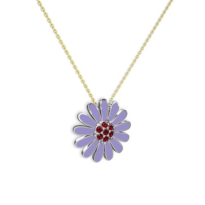 Garnet 18 ayar beyaz altın kolye (Menekşe mineli, 40 cm gümüş rolo zincir)