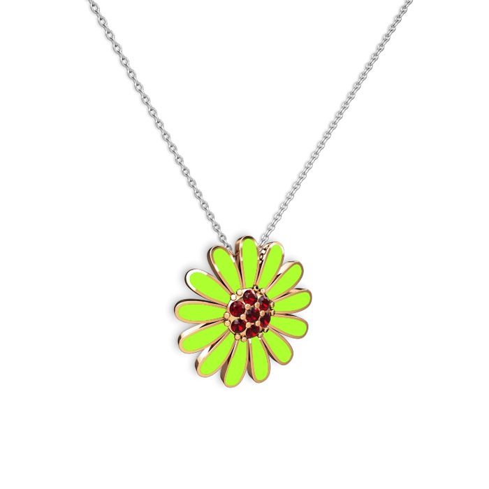 Garnet 925 ayar rose altın kaplama gümüş kolye (Neon yeşil mineli, 40 cm gümüş rolo zincir)