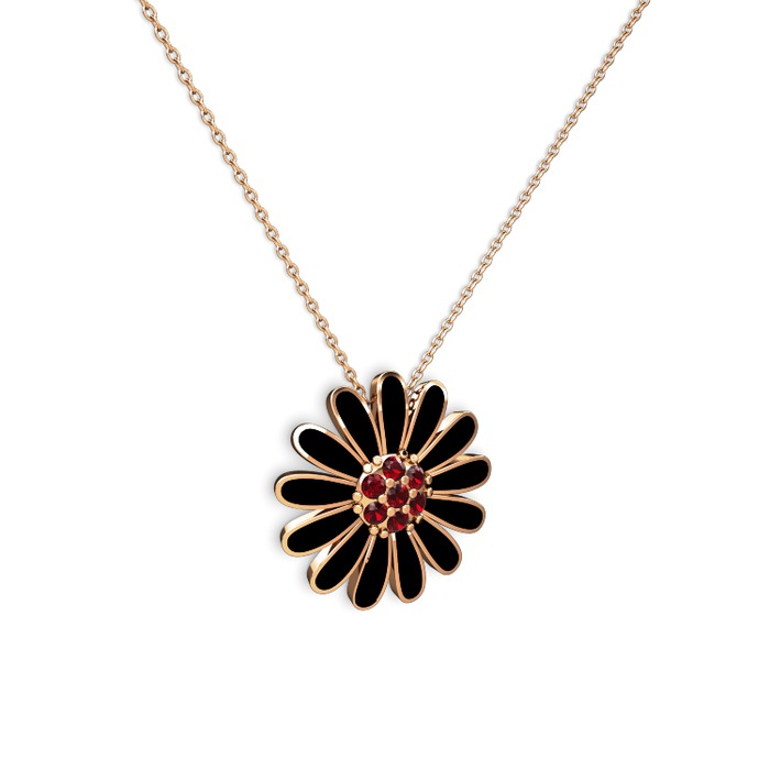 Garnet 925 ayar rose altın kaplama gümüş kolye (Siyah mineli, 40 cm rose altın rolo zincir)