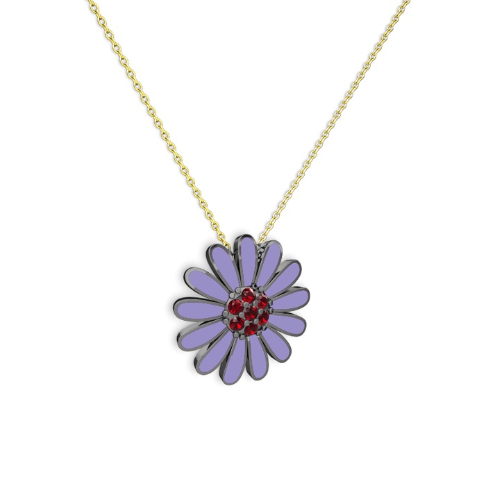 Garnet 925 ayar siyah rodyum kaplama gümüş kolye (Menekşe mineli, 40 cm altın rolo zincir)