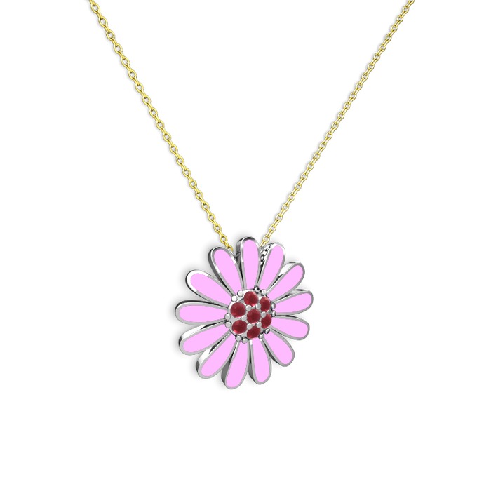 Kök yakut 14 ayar beyaz altın kolye (Pembe mineli, 40 cm altın rolo zincir)