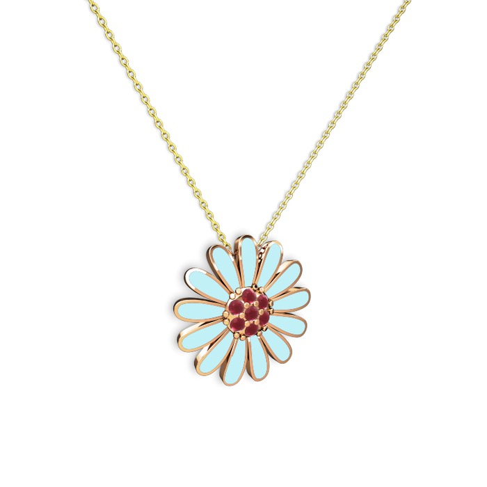 Kök yakut 18 ayar rose altın kolye (Pastel mavi mineli, 40 cm gümüş rolo zincir)