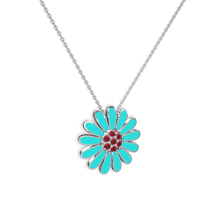 Kök yakut 925 ayar gümüş kolye (Turkuaz mineli, 40 cm beyaz altın rolo zincir)